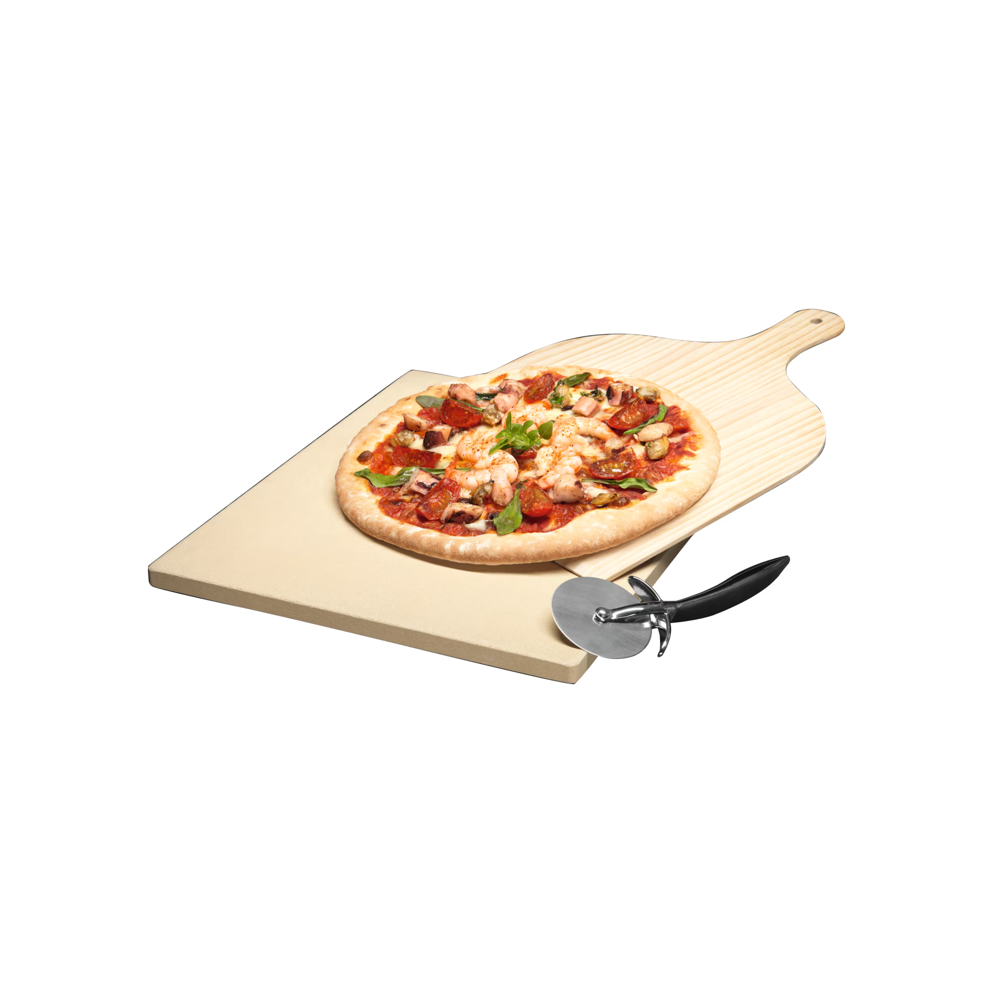 Pizzakő, falapát, rozsdamentes pizzaszeletelő