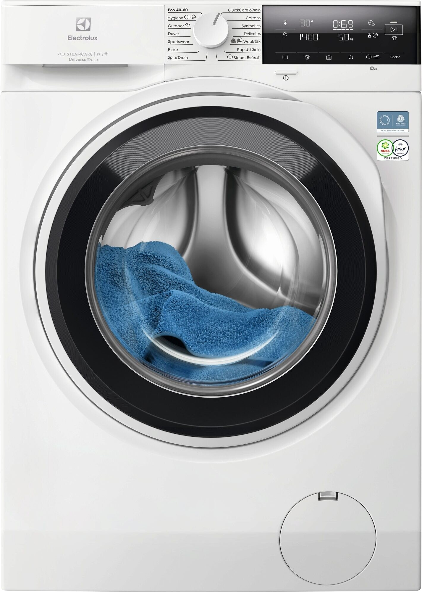 ELECTROLUX EW7F3494FQE Elöltöltős mosógép 9kg, 1400 f/p,Ökoinverter, WIFI,UNIVERSALDOSE, Steamrefresh