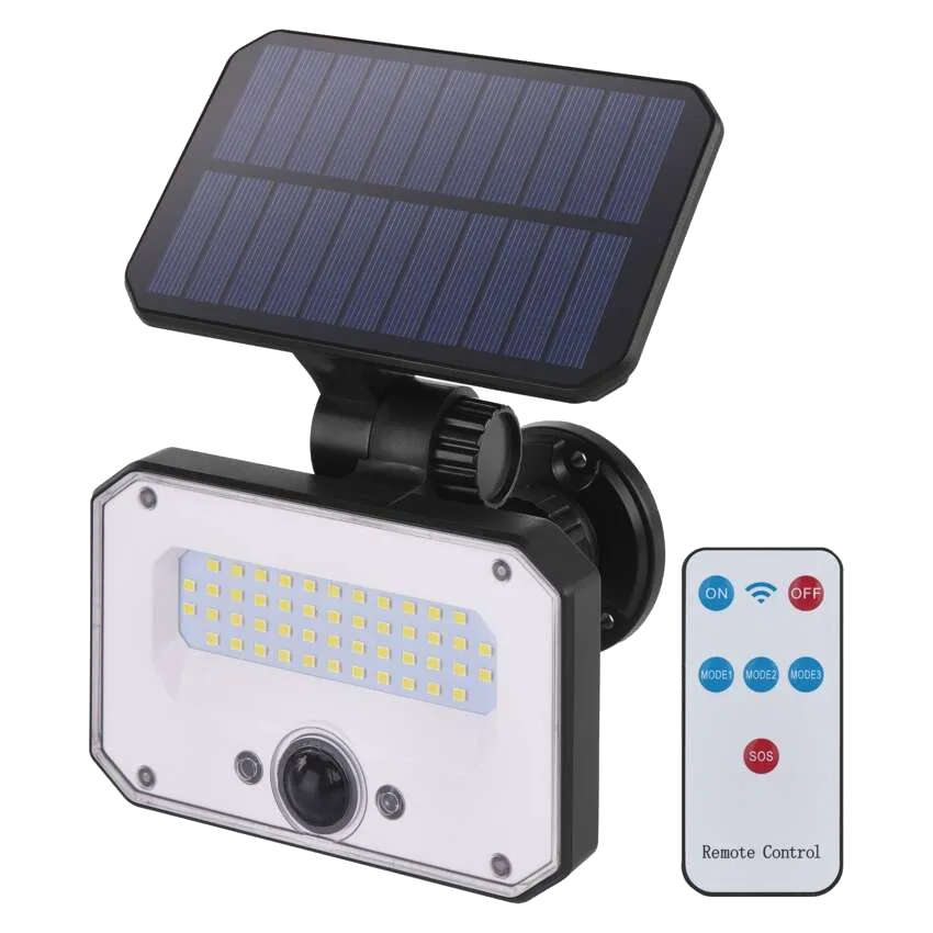 LED reflektor, szolárpanel, távirányító, használati útmutató, szerelési tartozékok