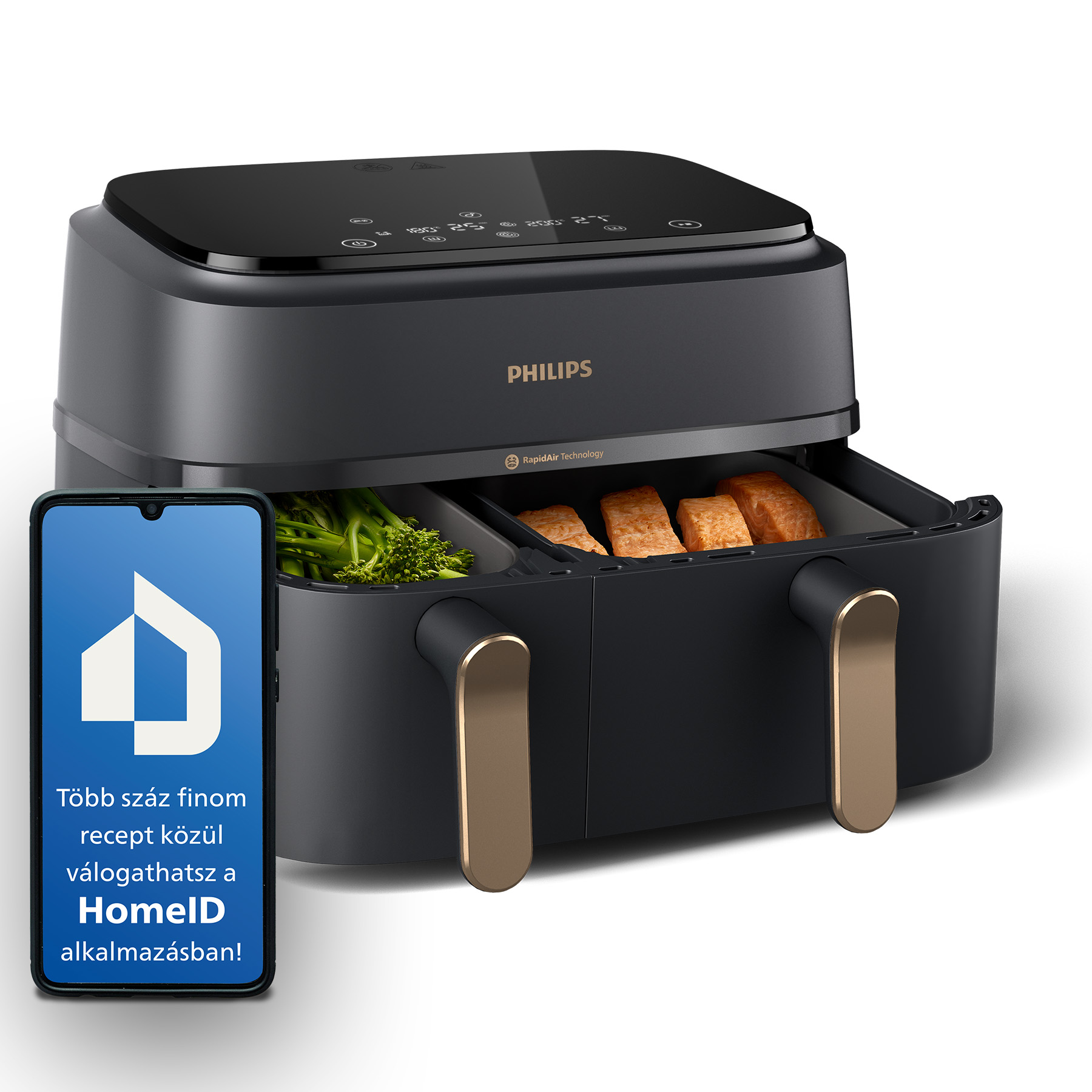 PHILIPS PHILIPS 5000 Series NA552/00 Airfryer 9 l dupla kosaras forrólevegős sütő gőzölés funkcióval