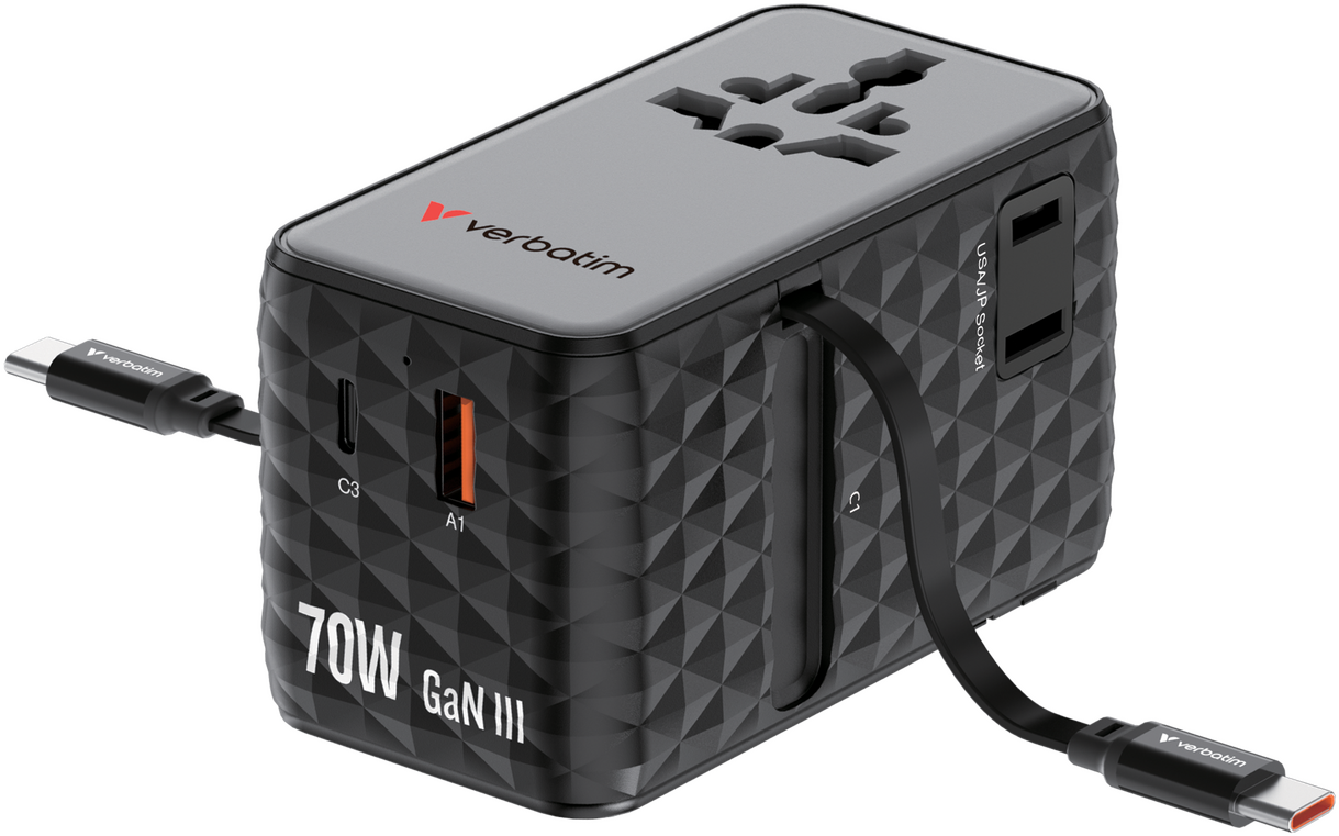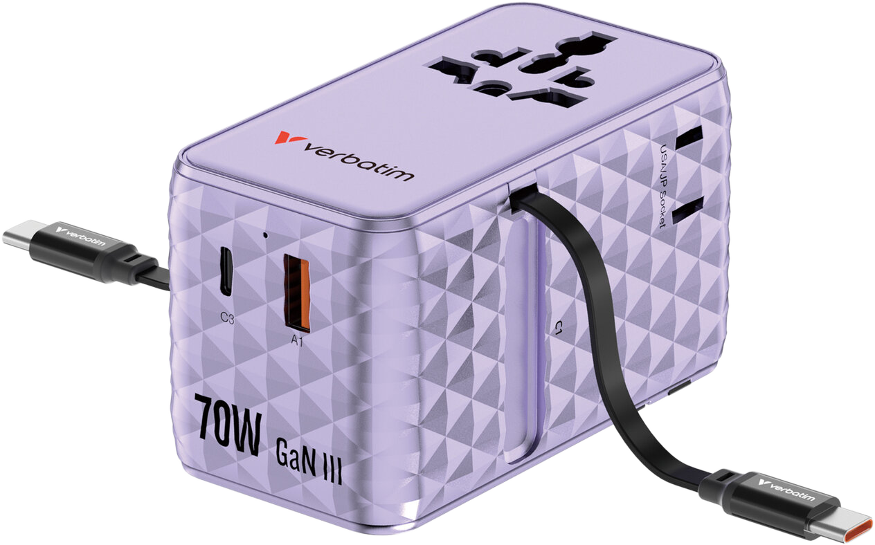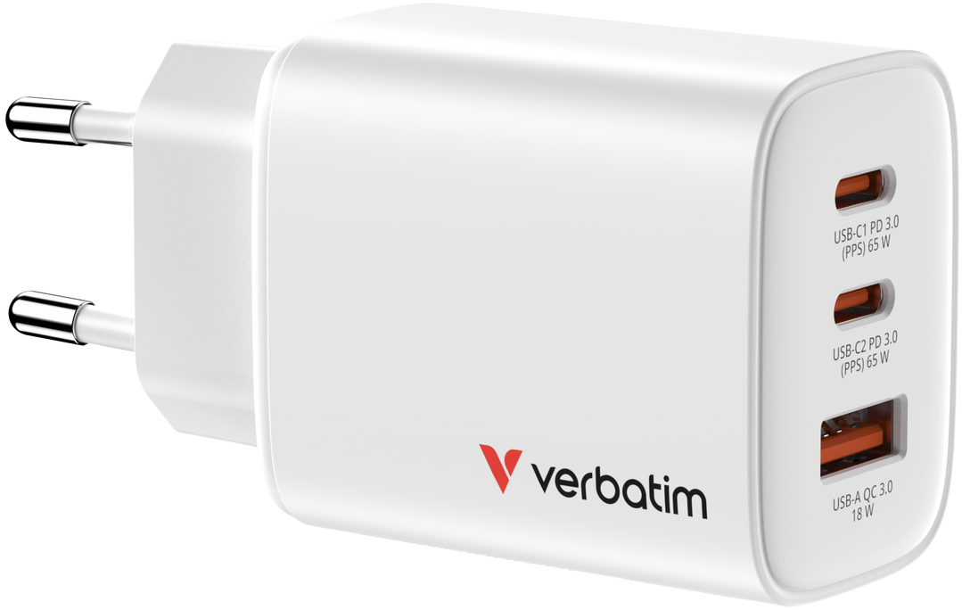 2x USB C (PD 3.0 65W), 1x USB A (QC 3.0 60W)