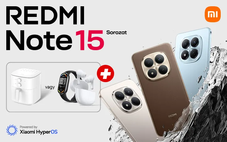 - Xiaomi Redmi Note 15 Pro és Pro+ okostelefonok esetében: Redmi Buds 8 Lite fülhallgatót és Xiaomi Smart Band 10 okoskarkötőt tartalmazó csomag, vagy Xiaomi Air Fryer Essential 6L forrólevegős sütő