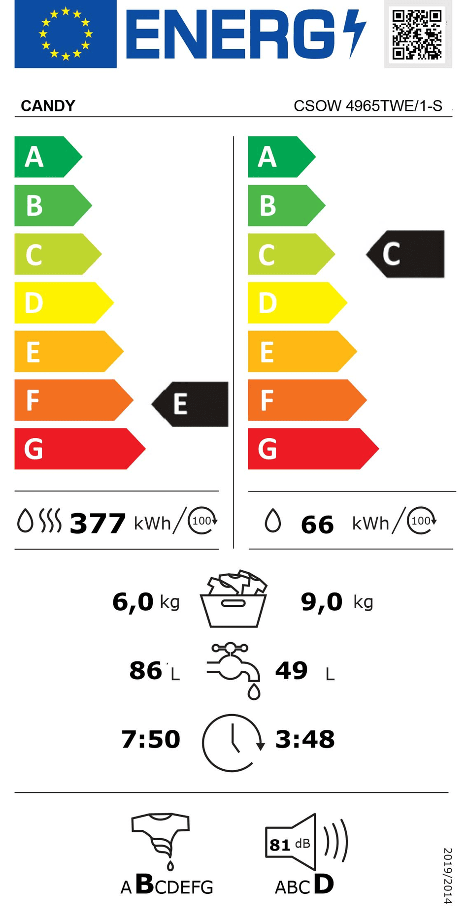 Ez a C energiaosztályú mosó-szárítógép (csak mosáskor) az új energiaosztály besorolásokkal van összhangban és a G energiaosztályhoz képest legalább 34% -kal kevesebb energiát fogyaszt, ezzel energiát és pénzt takarít meg, és sokkal környezetbarátabb.Technikai jellemzők | |