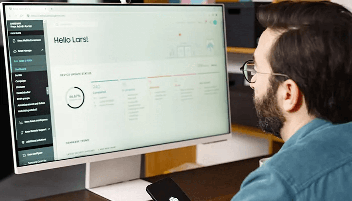 A „Secured by Knox” elnevezés a Samsung biztonsági és felügyeleti megoldásait jelöli, amelyek a Samsung mobilkészülékeit² már az első bekapcsolástól képesek megvédeni a támadásoktól. A többszintű, hardver- és szoftveralapú intézkedésekből álló, kombinált védelem segít elhárítani a potenciális fenyegetéseket, például a rosszindulatú programokat vagy vírusokat. Mivel minden adat alapértelmezetten egy minősített³, biztonsági tanúsítvánnyal rendelkező algoritmusra épül, készüléklopás vagy -elvesztés esetén sem lehet hozzáférni a készüléken található érzékeny adatokhoz. A készülékszintű védelem mellett a Samsung sokoldalú IT-megoldáscsomagot kínál vállalatok és állami szervek számára.