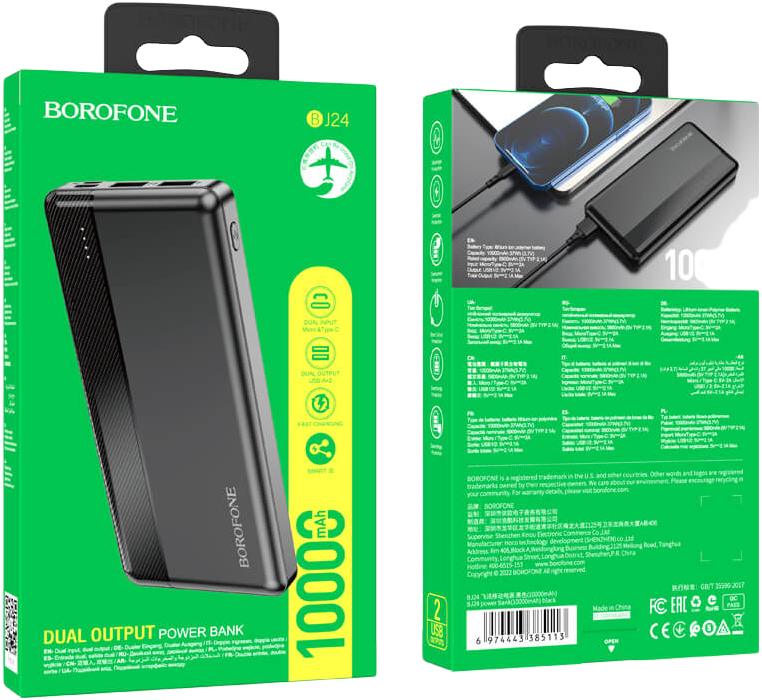 BOROFONE Powerbank 10.000 mAh LED töltésjelzővel Fekete