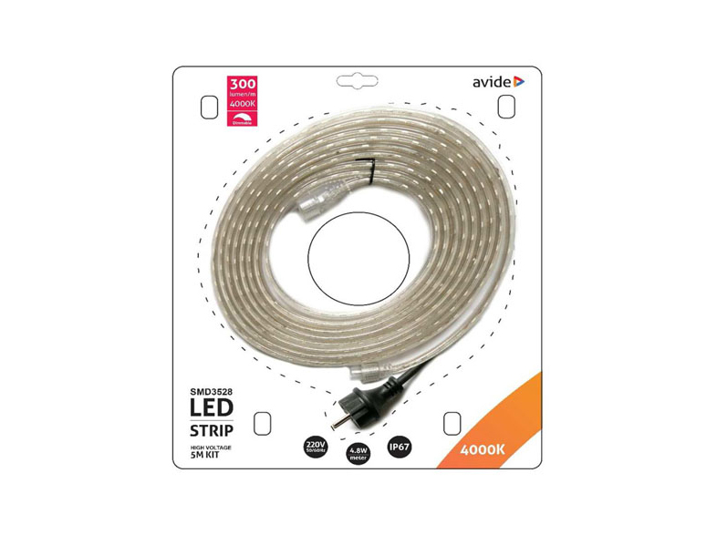 AVIDE ABLSBL-220V-3528-60NW LED Szalag Bliszter 220V 4.8W NW 5m