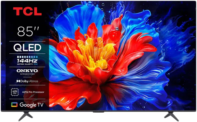 (106 db)TCL 85P8K 4K -HDR QLED 144Hz Google TV, Onkyo Dolby Atmos 2.1, 216 cm