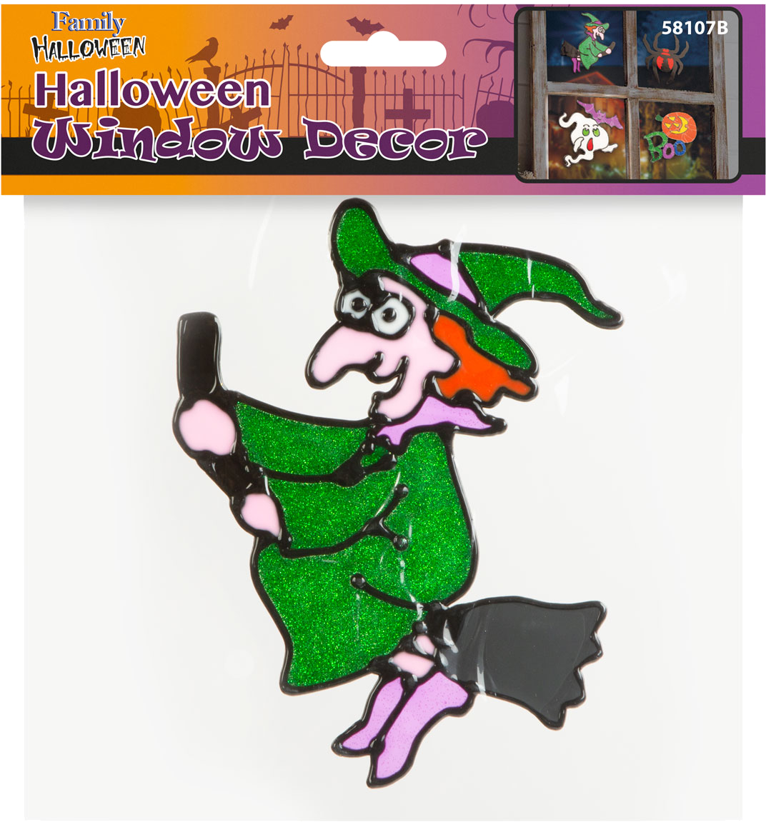 FAMILY HALLOWEEN 58107B Színes csillámos ablakmatrica, boszorkány