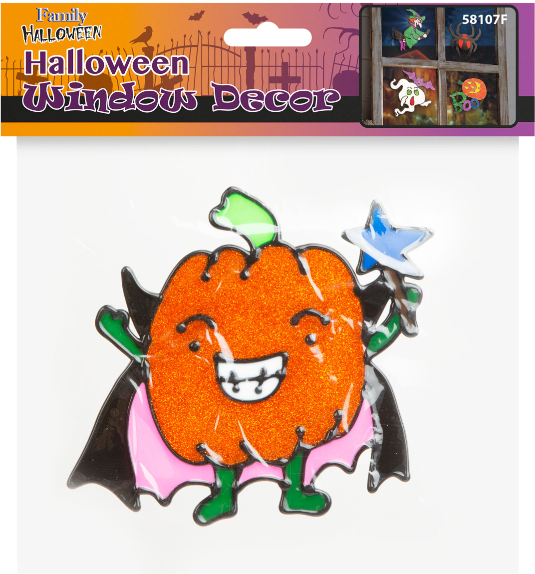 FAMILY HALLOWEEN 58107F Színes csillámos ablakmatrica, tök
