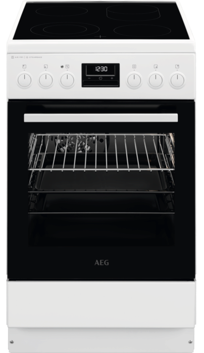 AEG CCB6440CBW Kerámia tűzhely, AirFry, Multi 8, 72 l, sütővilágítás, sütősín, grill, digitális programóra, teleszkópos sütősín