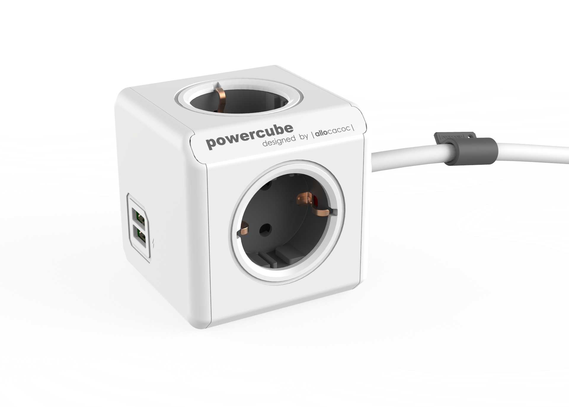 ALLOCACOC 1202GY/OUPC PowerCube Original Elosztó, 4 dugalj + 2 USB csatlakozó, szürke