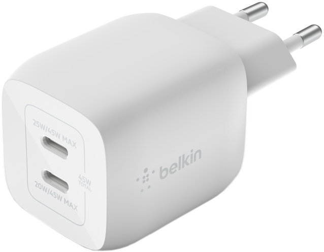 (29 db)BELKIN Boost Charge Pro 45W GaN hálózati töltő kettős USB-C csatlakozással, fehér (WCH011vfWH)