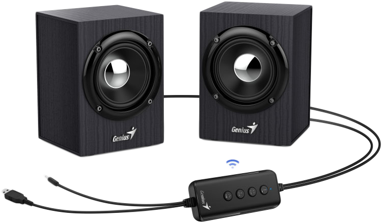 (7 db)GENIUS SP-HF 385BT sztereó fadobozos hangszóró szett, Bluetooth, 3,5mm jack, USB táp, fekete (31730046400)
