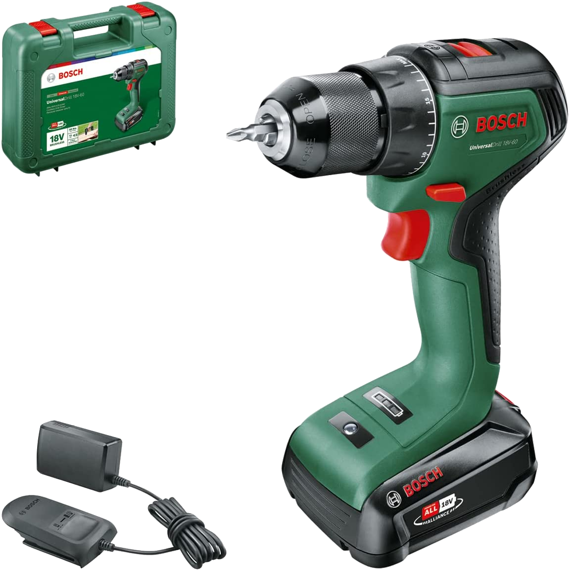 BOSCH UniversalDrill 60 Akkumulátoros kétfokozatú fúrócsavarozó, 18V, akkuval és töltővel (1x2,0 Ah) (06039D7001)