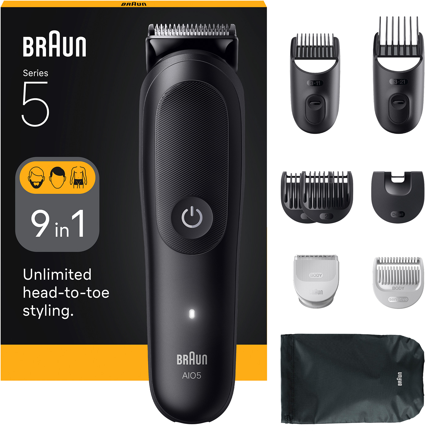BRAUN AIO5540 Series 5 All-in-One Formázókészlet - Tetőtől Talpig, Trimmer 9 az 1-ben