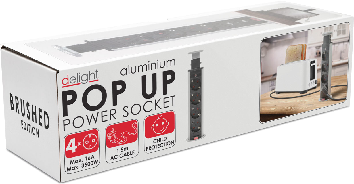 DELIGHT 20431B Rejtett elosztó - 4 db aljzat, szálcsiszolt fém ház