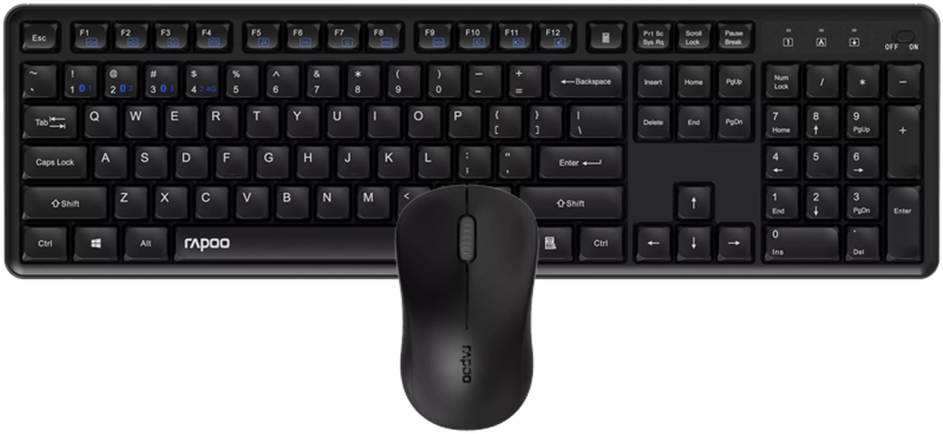 RAPOO 8150M Silent Vezeték nélkül billentyűzet + egér, 2,4GHz+Bluetooth, Magyar kiosztás, fekete (229634)