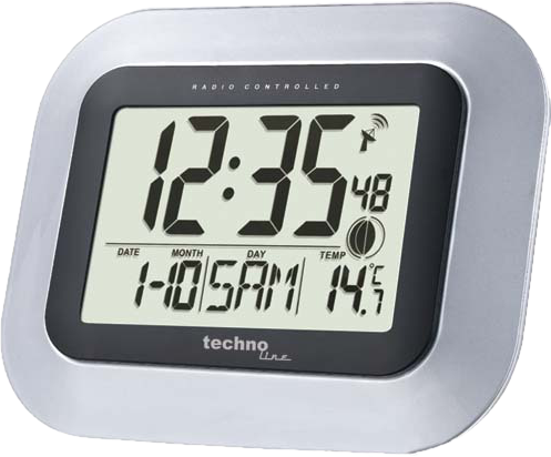 TECHNOLINE Rádióvezérlésű digitális falióra, holdfázis kijelzéssel, monochrom kijelzővel, ezüst (WS 8005)