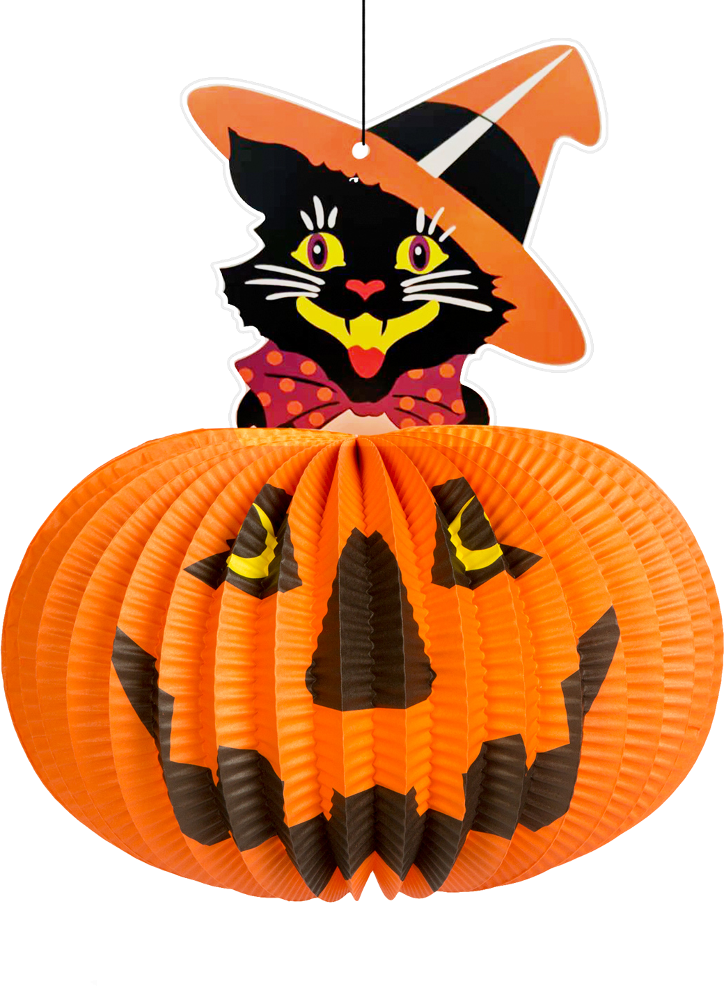 FAMILY HALLOWEEN Halloween-i tökös lampion, macskával, akasztható, 26 cm (58137A)