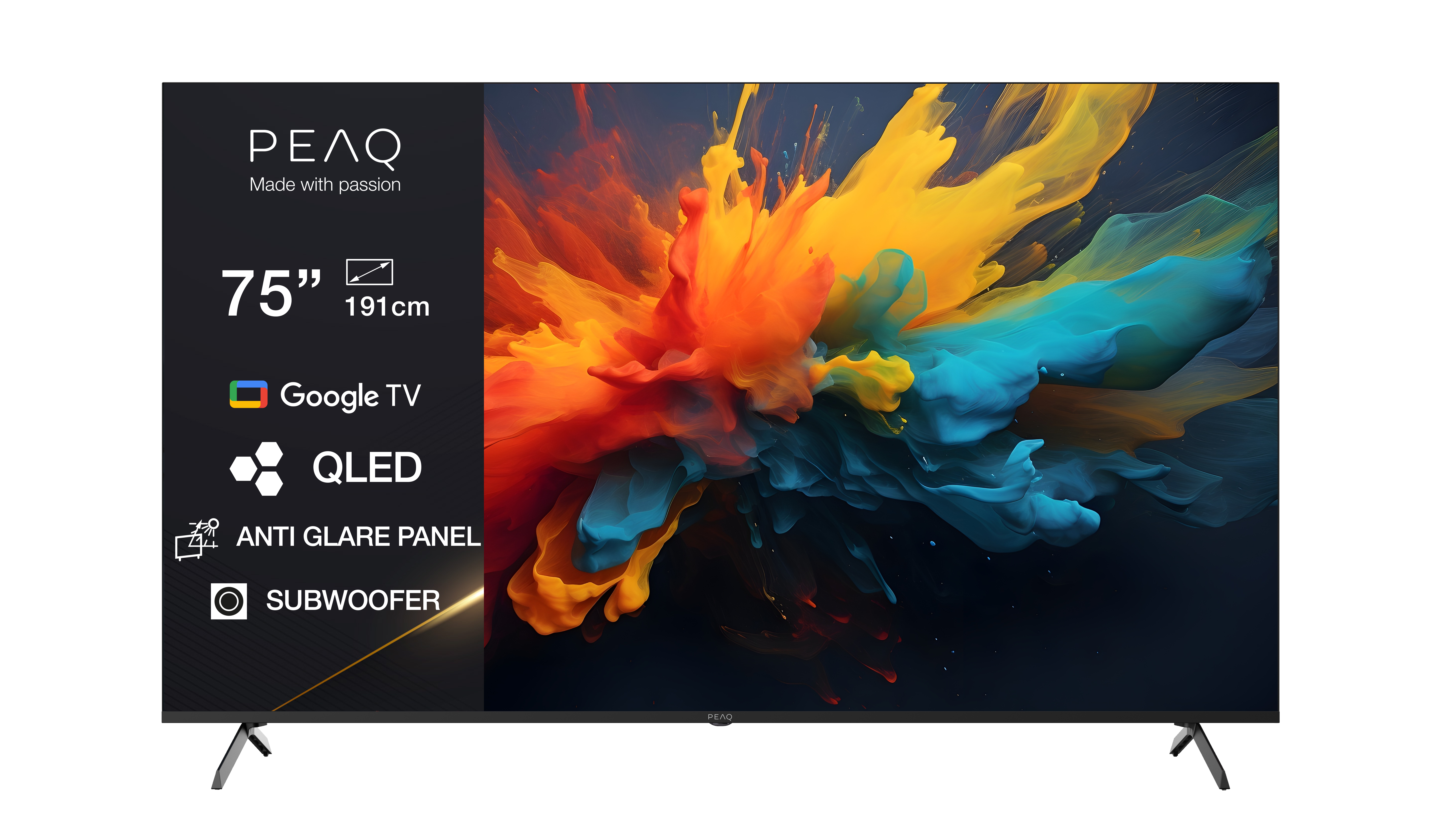 (56 db)PEAQ PTV 75GQU-5025C AG 4K UHD, Smart Google TV, QLED, tükröződésmentes, 189 cm