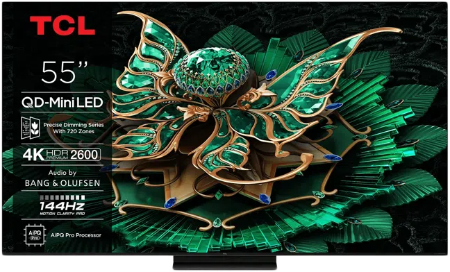 TCL 55C7K QD-Miniled 144Hz Google TV, Low-reflection screen, Bang & Olufsen sound, 139 cm