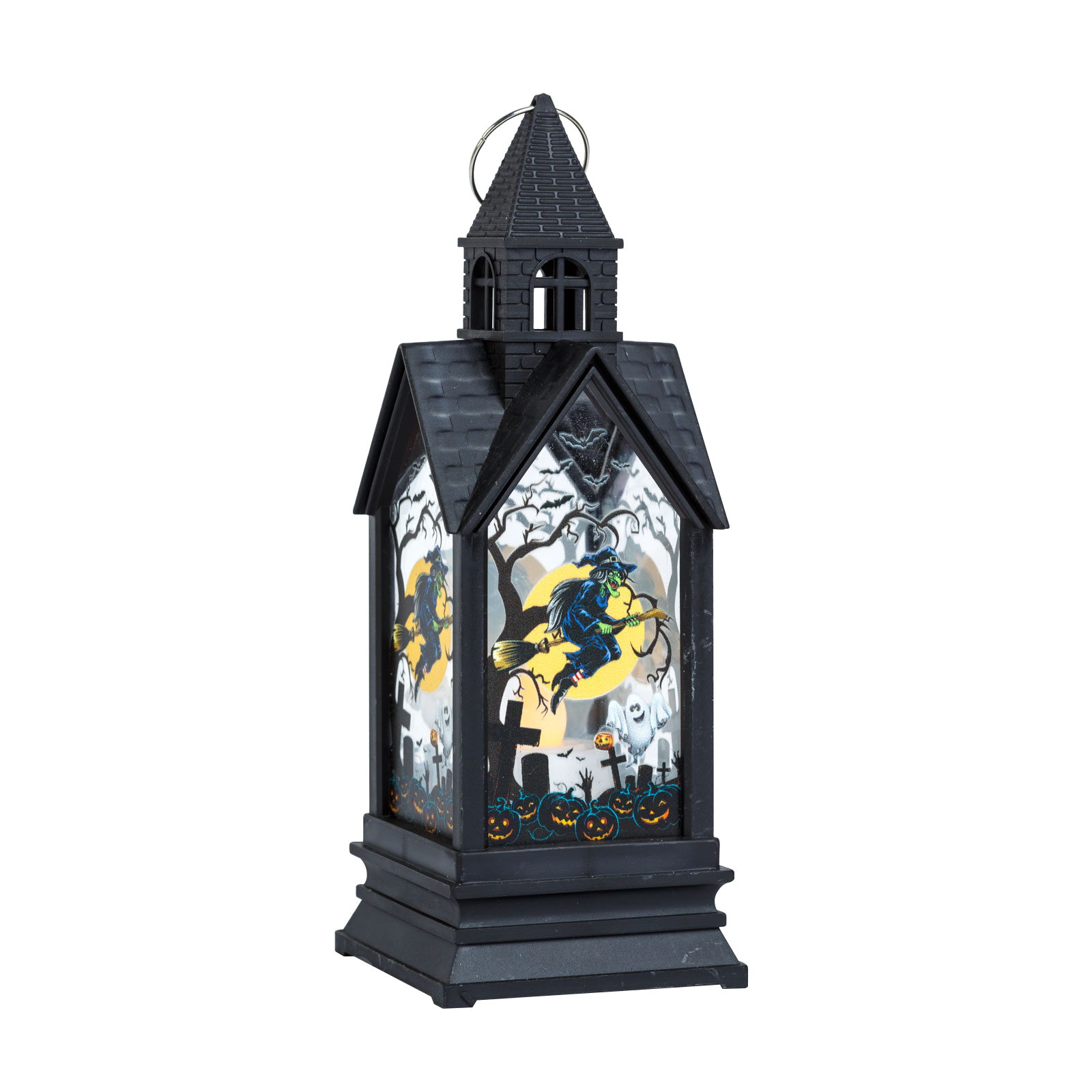 FAMILY HALLOWEEN Halloween-i LED lámpás, boszorkány, melegfehér, fekete, 9,5x9,5x17 cm (56549C)