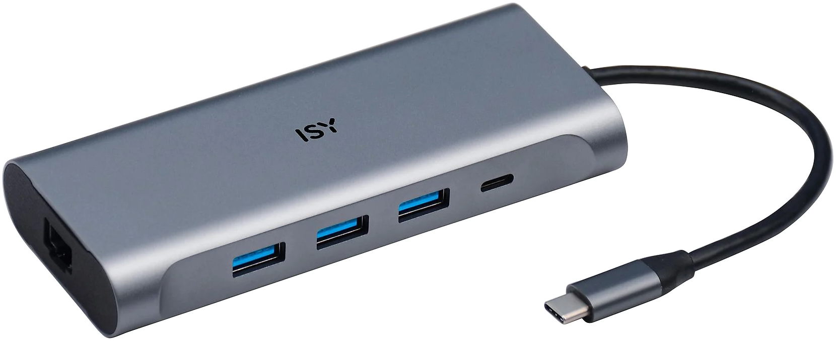 ISY IAD-1025-1 USB 3.1 Type-C M.port adapter, 1x 4K HDMI, 3xUSB-A, LAN, 1xUSB-C, jack, CR (2V225519), szürke