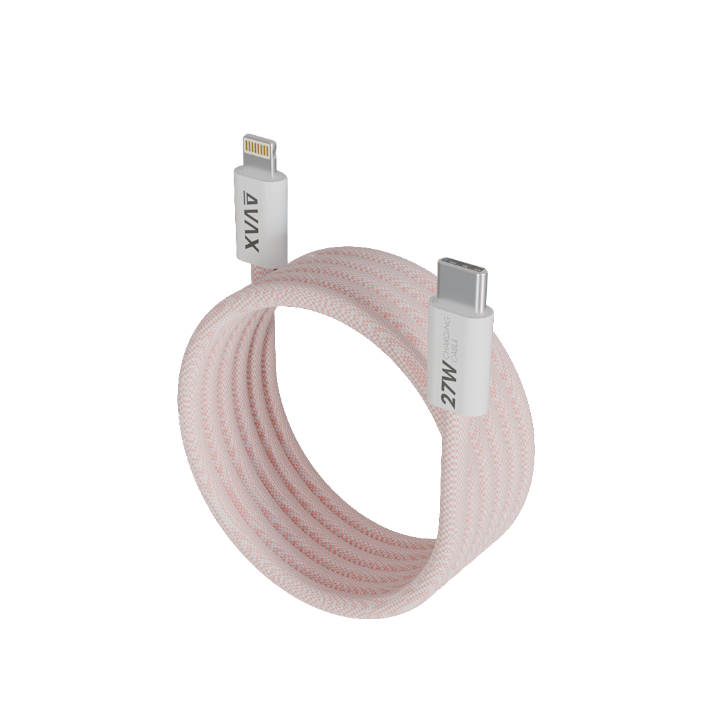 AVAX MAGNETY 27W USB-C - Lightning mágneses gyorstöltő kábel, fonott 1m, pink (CB611P)