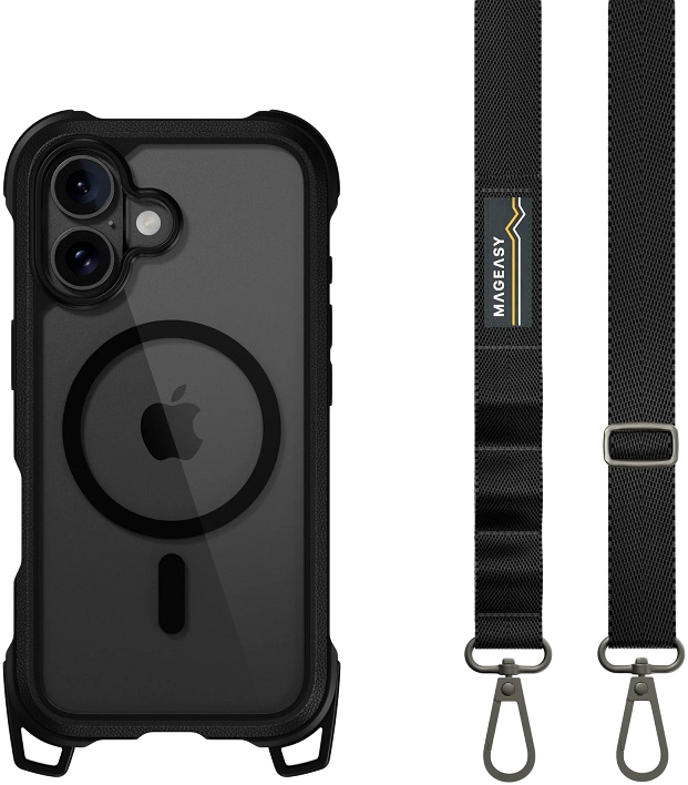 SWITCHEASY Odyssey iPhone 16 Plus ütésálló tok szíjjal, MagSafe, átlátszó hátlap (MPH667257LB24)