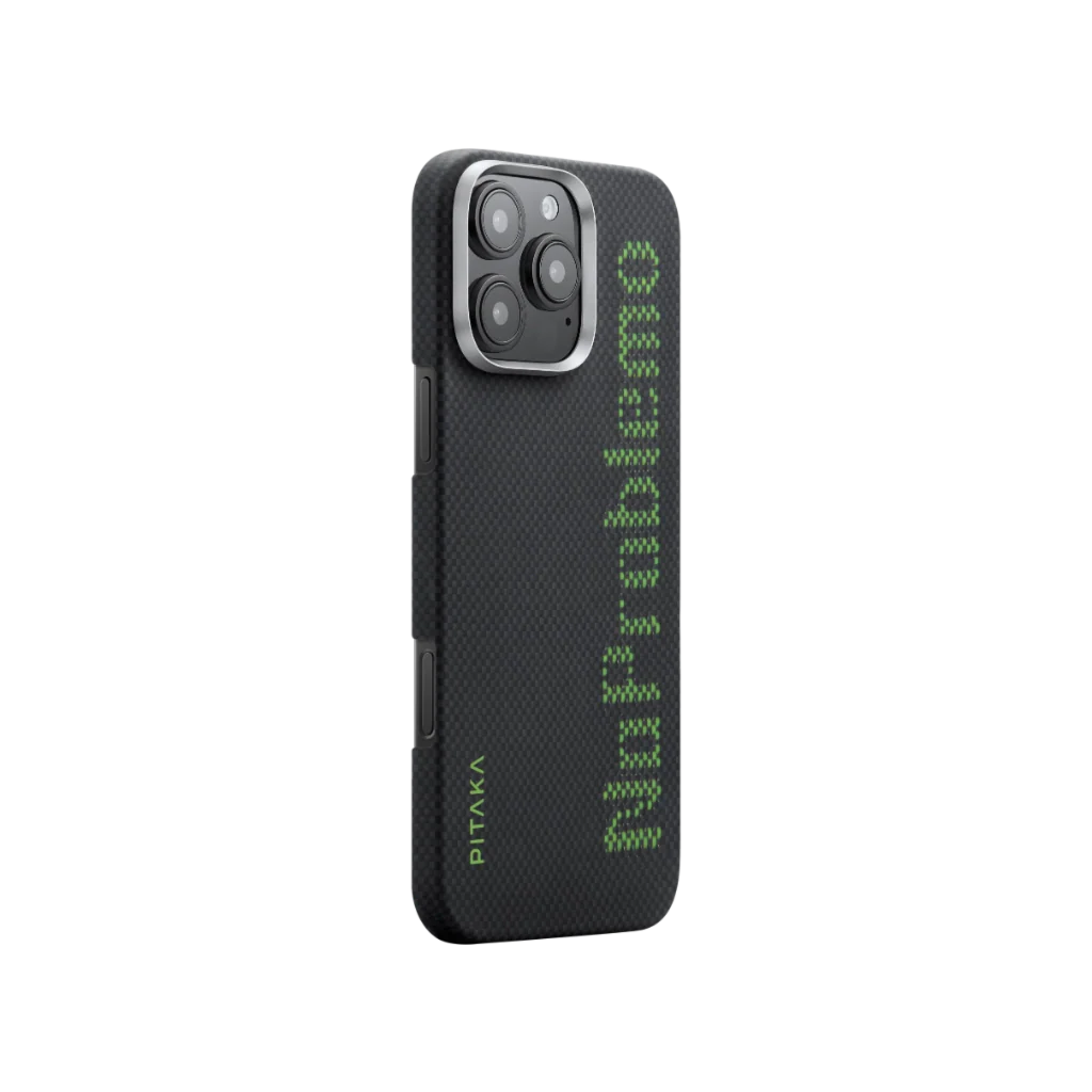PITAKA Aries iPhone 16 Pro MagSafe kompatibilis szőtt telefontok, NoProblemo minta, fekete-zöld (KI1601NO)