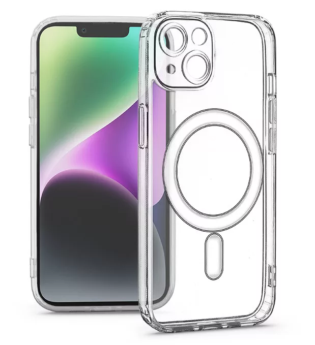 (60 db)HAFFNER iPhone 14 MagSafe kompatibilis kameravédős szilikon tok, átlátszó (HF185618)