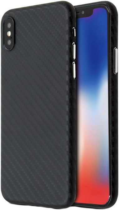 VIREO CV110CF 0.4 JELLY 2 : iPhone XS/X karbonszál mintázatú tok + üvegfólia szett