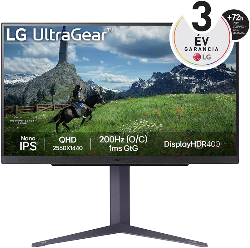 LG UltraGear 27GS85Q-B.AEU 27'' Sík QHD 180 Hz 16:9 FreeSync Nano IPS Gamer Monitor