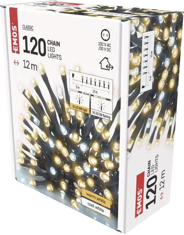 EMOS kültéri és beltéri, LED fényfüzér, villogó, 12 méter, 120 LED, meleg/hideg fehér (D4AN02)