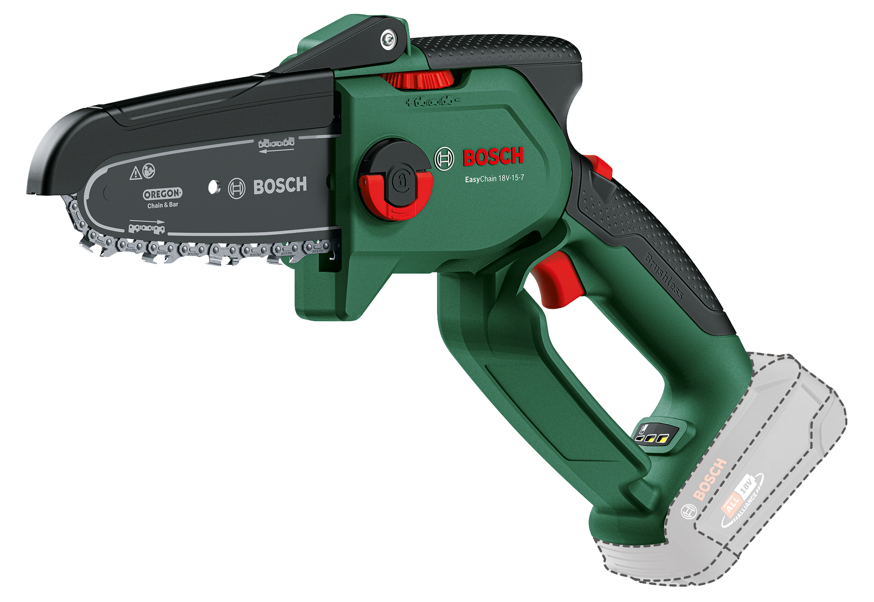 BOSCH EasyChain 18V-15-7 Akkumulátoros láncfűrész, 18V, 15cm, akku és töltő nélkül (06008B8901)