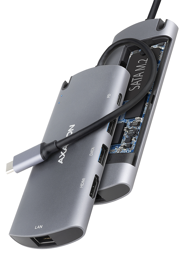 AXAGON USB 3.2 Gen1 Type-C multiport adapter, 5 Gbit/s, 2x USB-A, Type-C, HDMI, LAN, M.2 SATA (HMC-6M2)