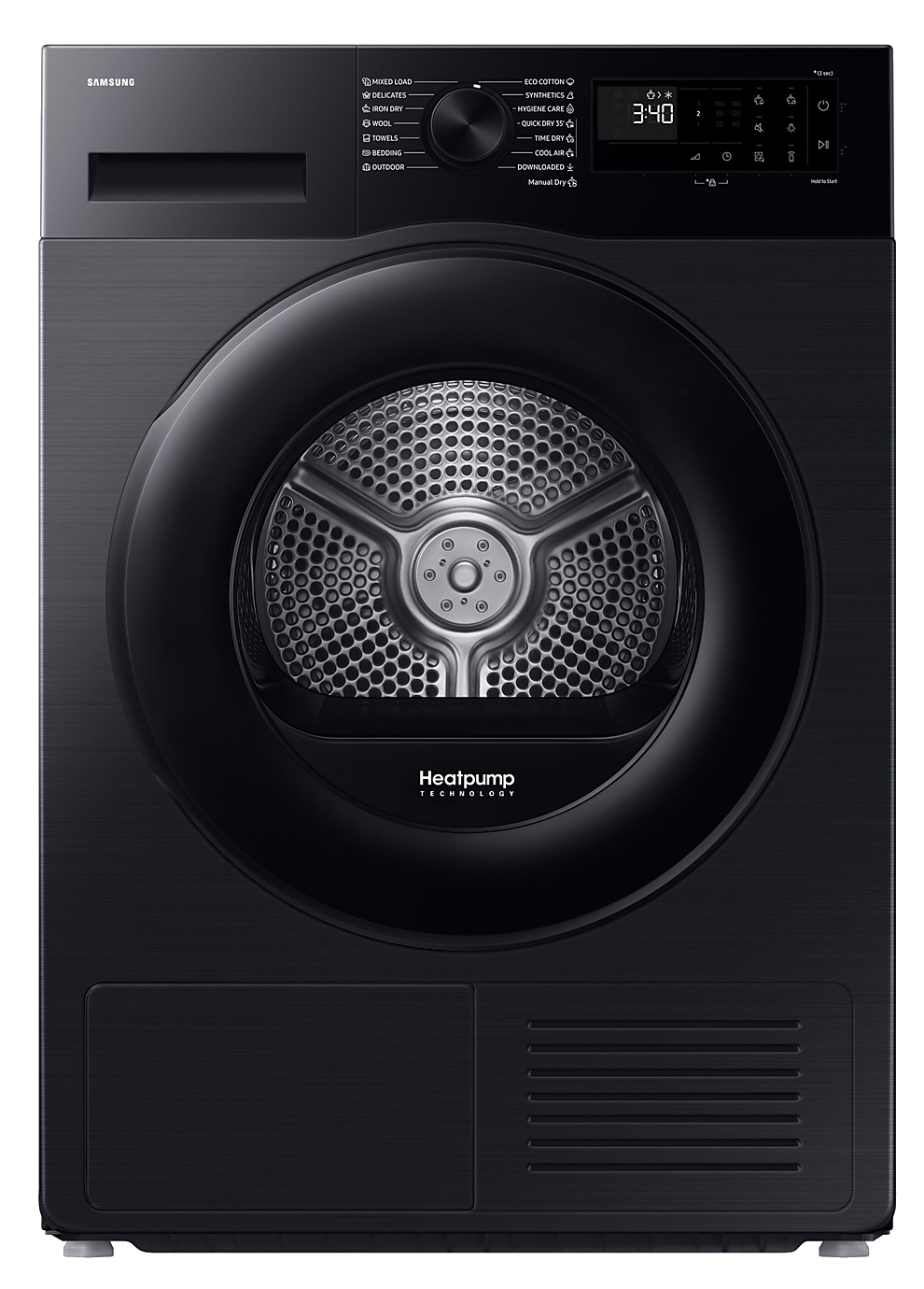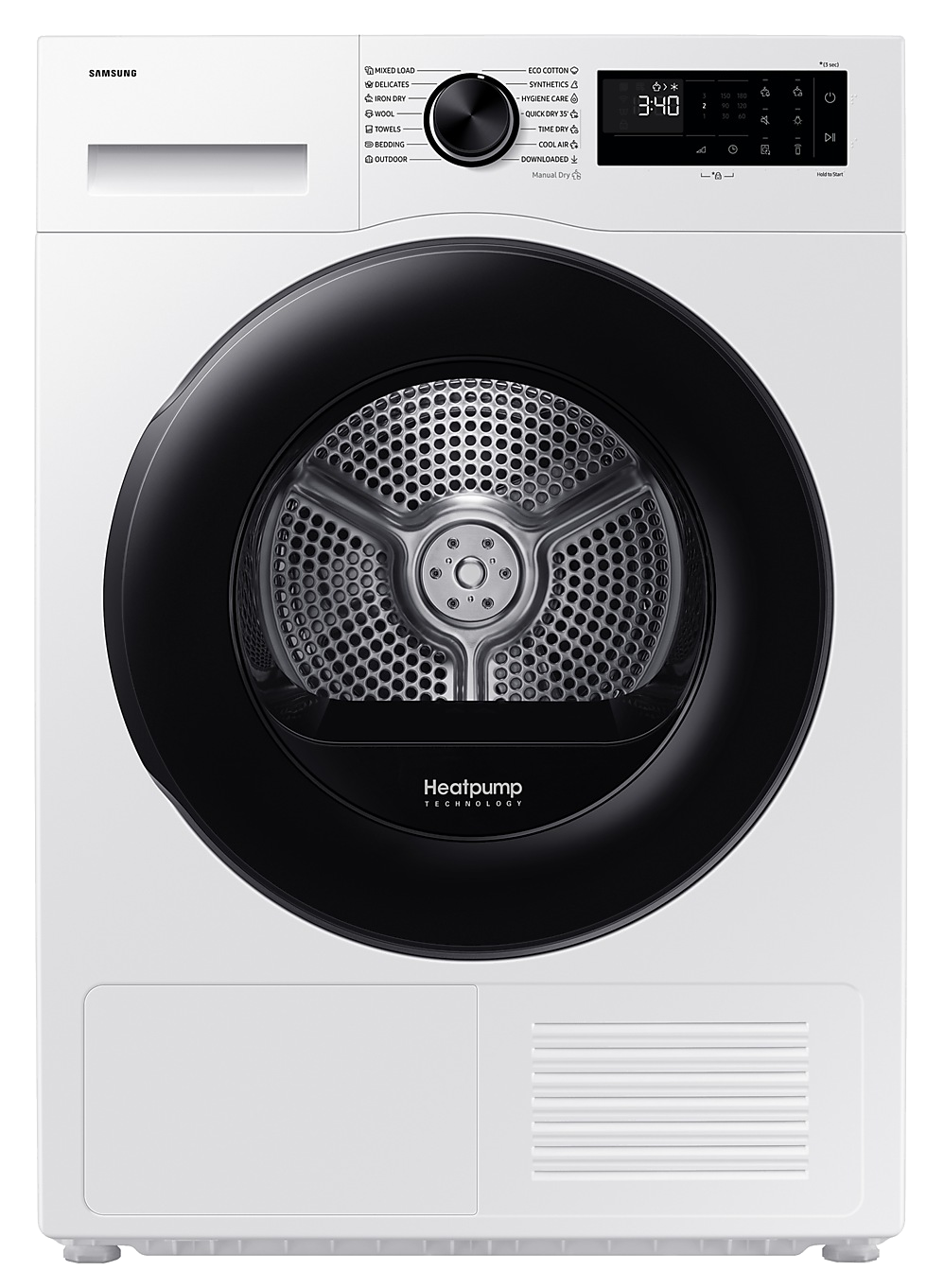 - Programok: Hideg levegő, Vasalás Száraz, Kültéri Ruházat, Időre Szárítás, Törölközők, Gyapjú, Opciók listája (Gyűrődésgátlás, Szárítási Fokozat, Szárítási Idő, Nyirkosság jelzés, Gyermekzár, Dobfény, Hang kikapcsolás), Ágynemű, Gyorsszárítás / 35 perc, ECO Cotton, Finom anyagok, Vegyes ruhatöltet, Szintetikus anyagok, Higénikus tisztítás, Letöltött programok