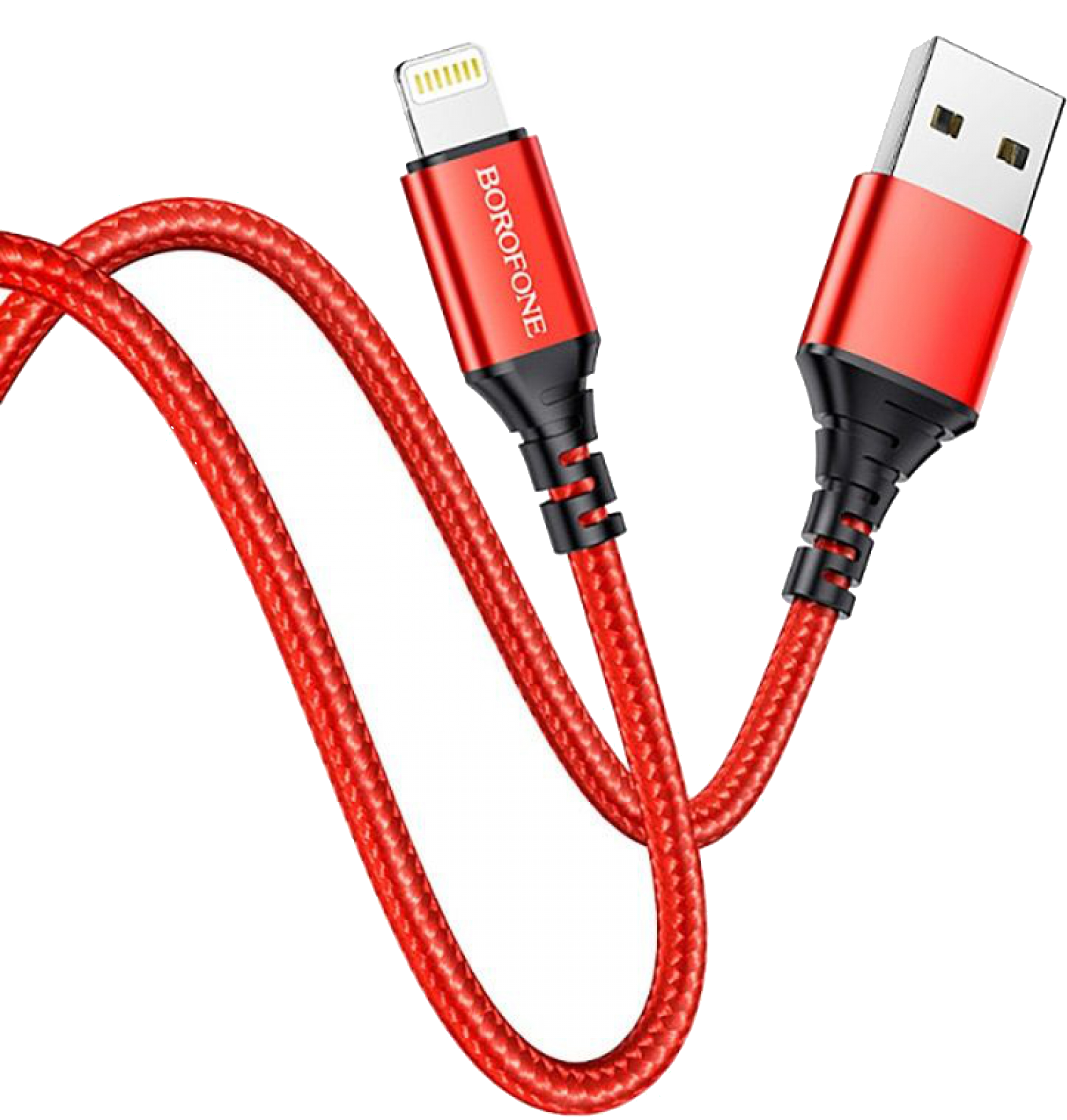 BOROFONE 100 cm-es textil bevonatú Lightning kábel, piros (BX54LIGHTNING)