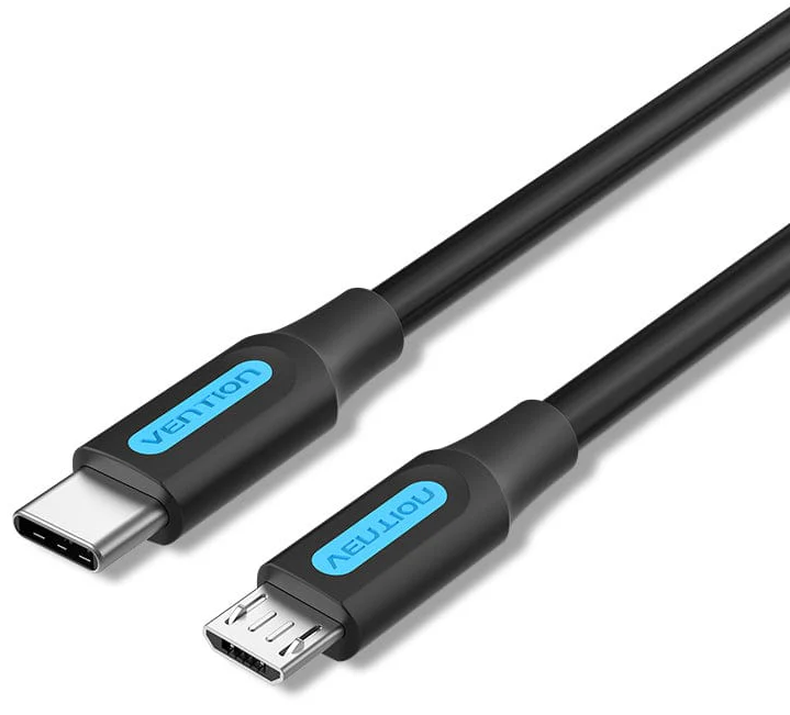 VENTION adat és töltőkábel, USB-C 2.0/M - Micro B/M, 1,5m, 2A, fekete (COVBG)