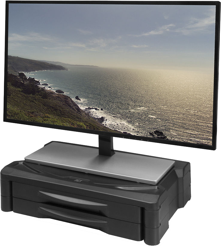 ACT Extra széles asztali monitor tartó állvány, állítható magasság, 2db fiók, fekete (AC8215)