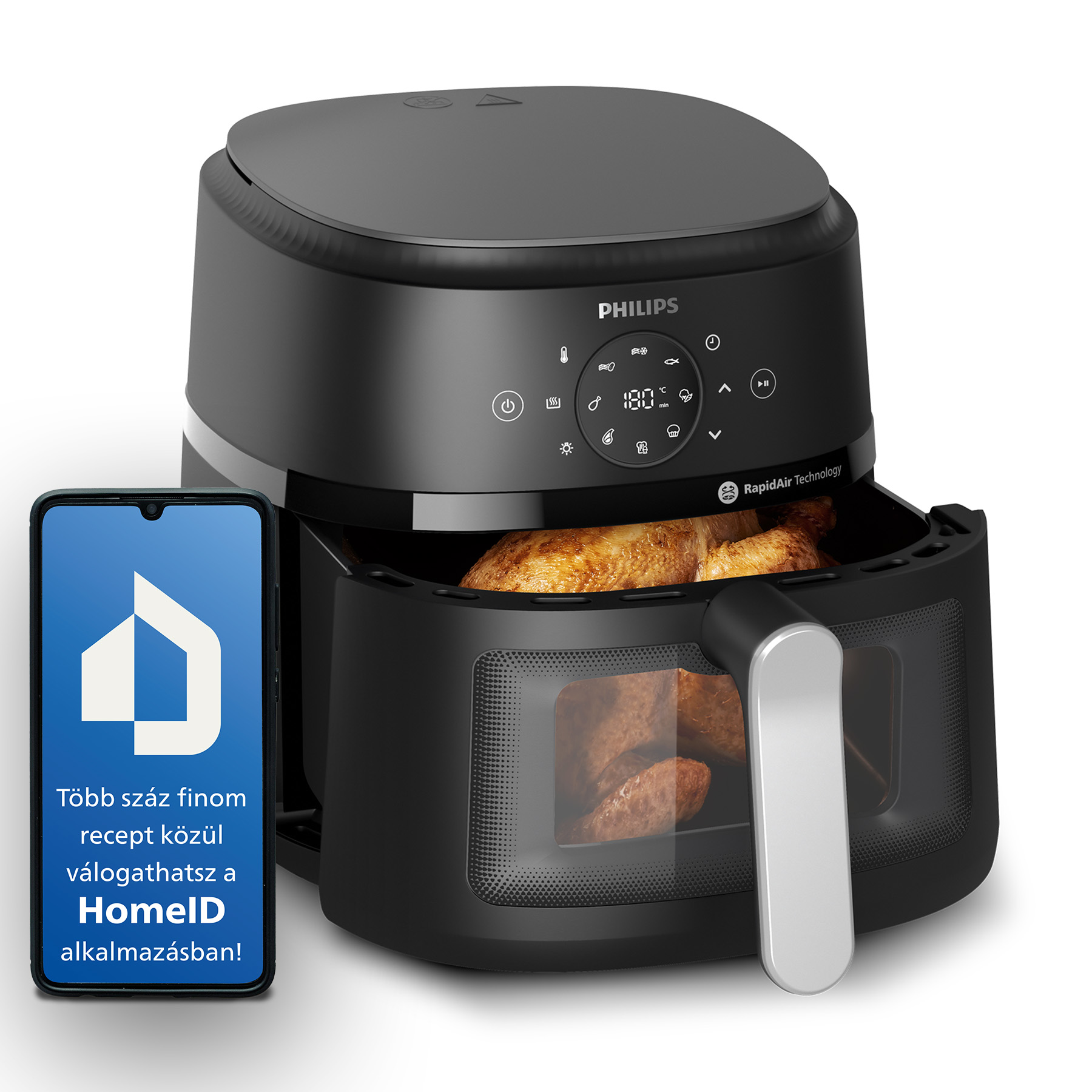 - Termék típusa: Betekintő ablakos forrólevegős sütő