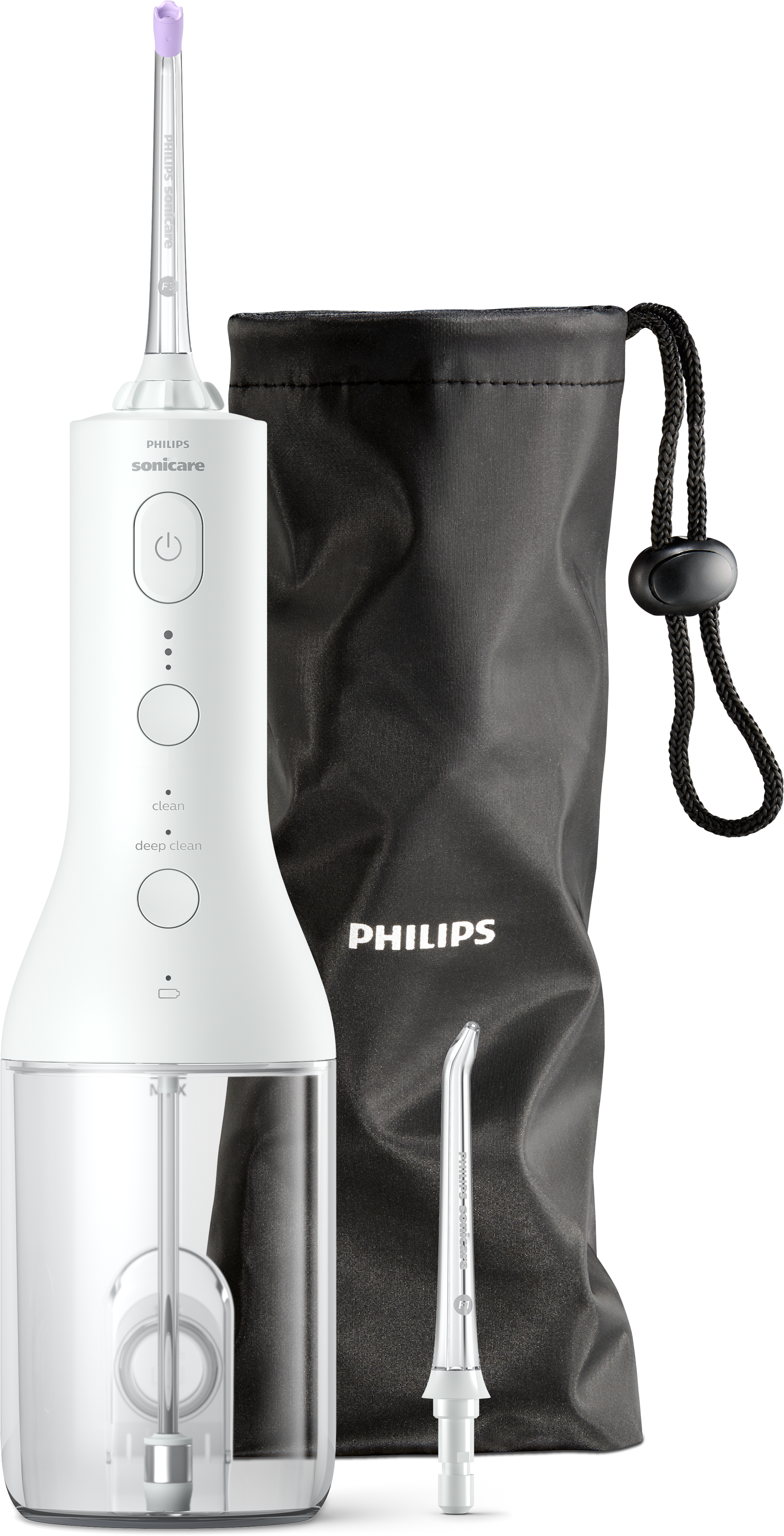 PHILIPS HX3826/31 Sonicare PowerFlosser Cordless fogköztisztító, fehér, utazótáskával, F1 és F3 fejekkel