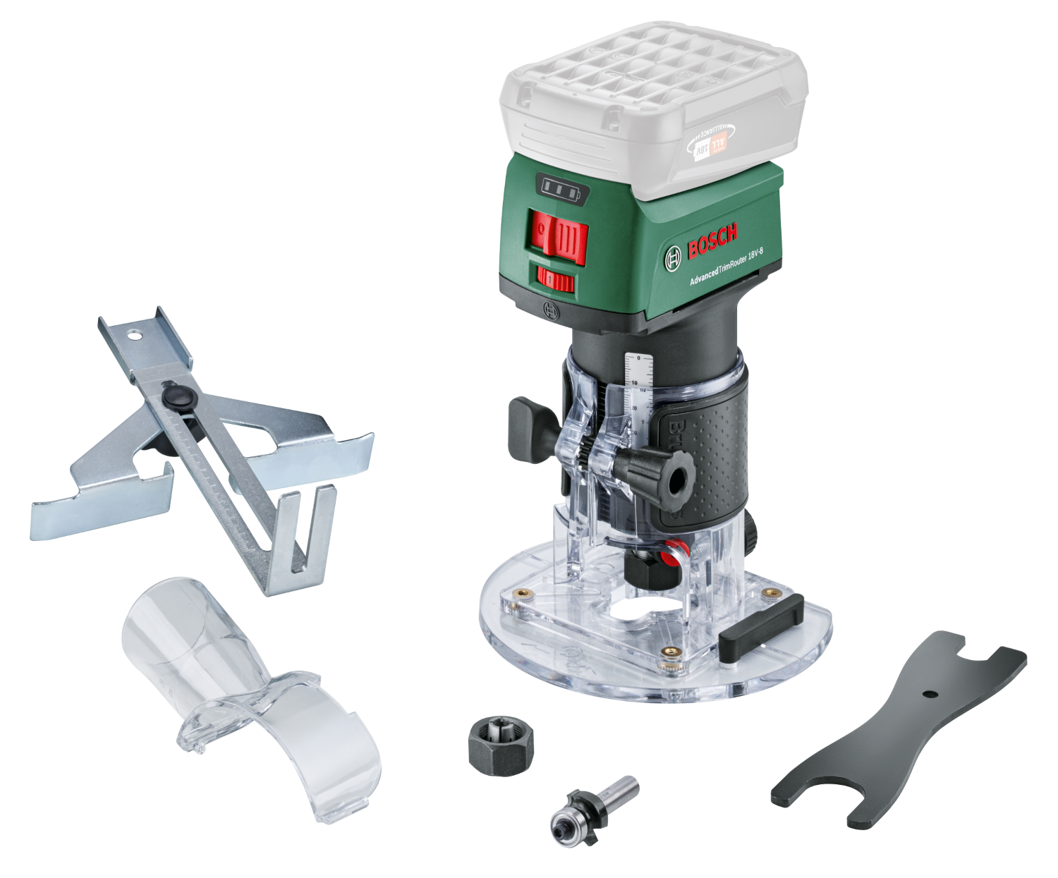 BOSCH AdvancedTrimRouter 8 Akkumulátoros felsőmaró, 18V, akku és töltő nélkül (06039D5000)