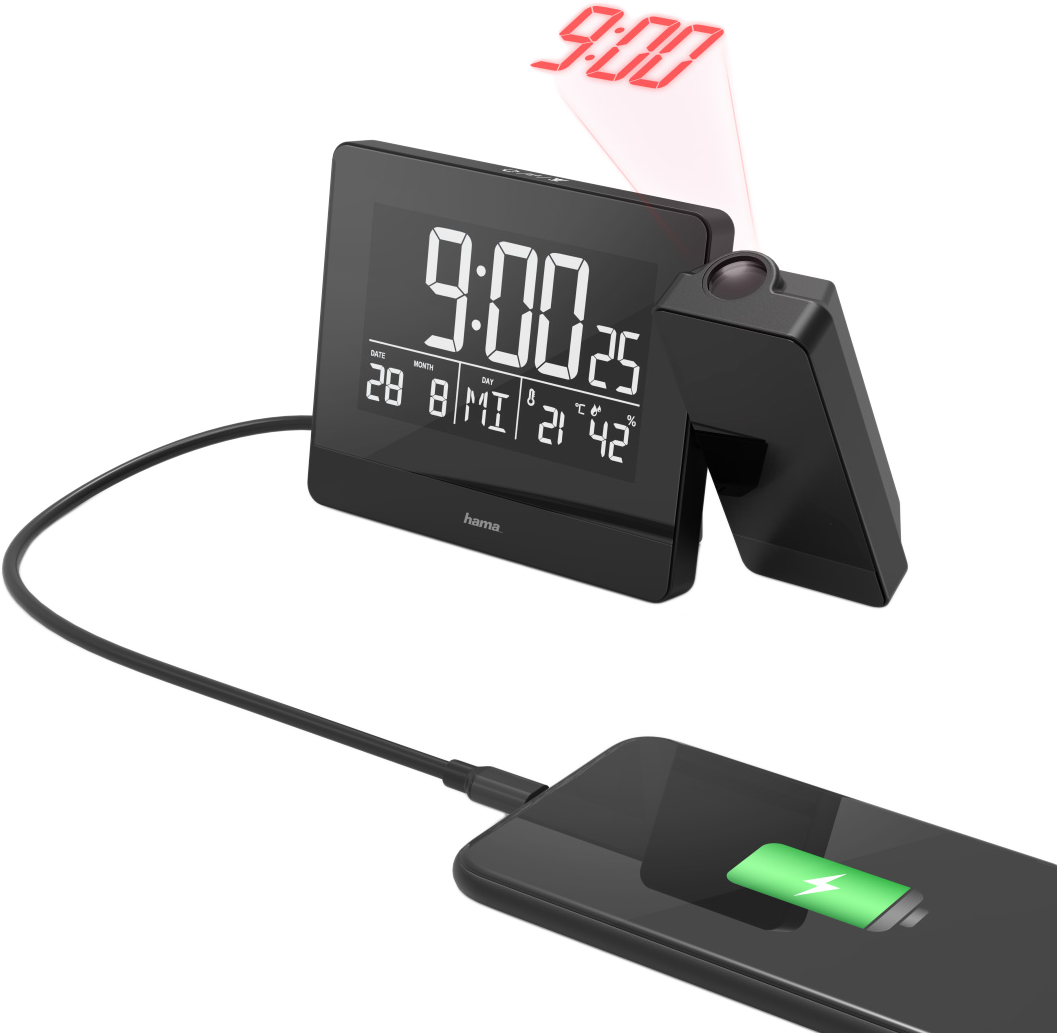 HAMA Projektoros ébresztőóra USB aljzattal 2,4A (186332)