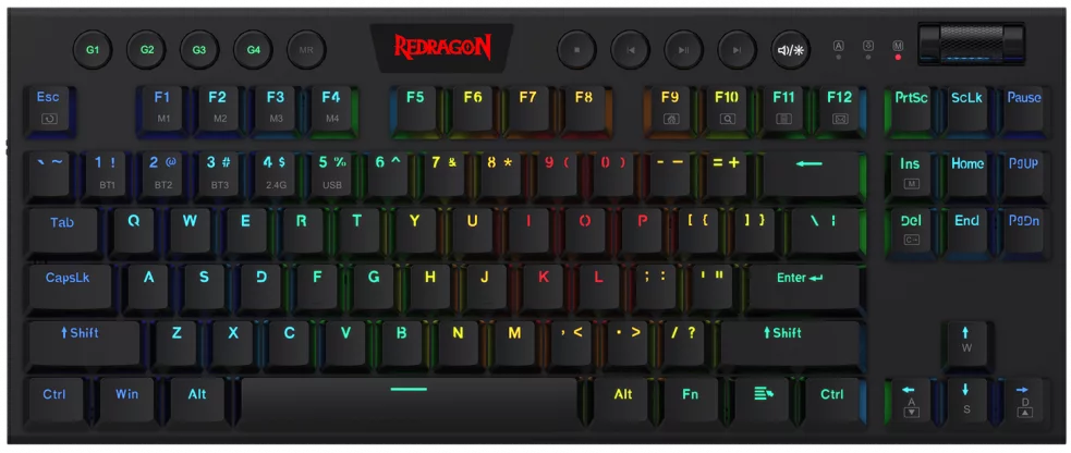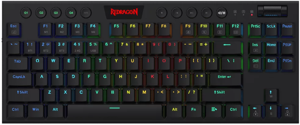 REDRAGON Horus TKL vezeték nélküli gaming billentyűzet, mech. piros kapcsoló, RGB, magyar (K621-RGB_RED_HU)