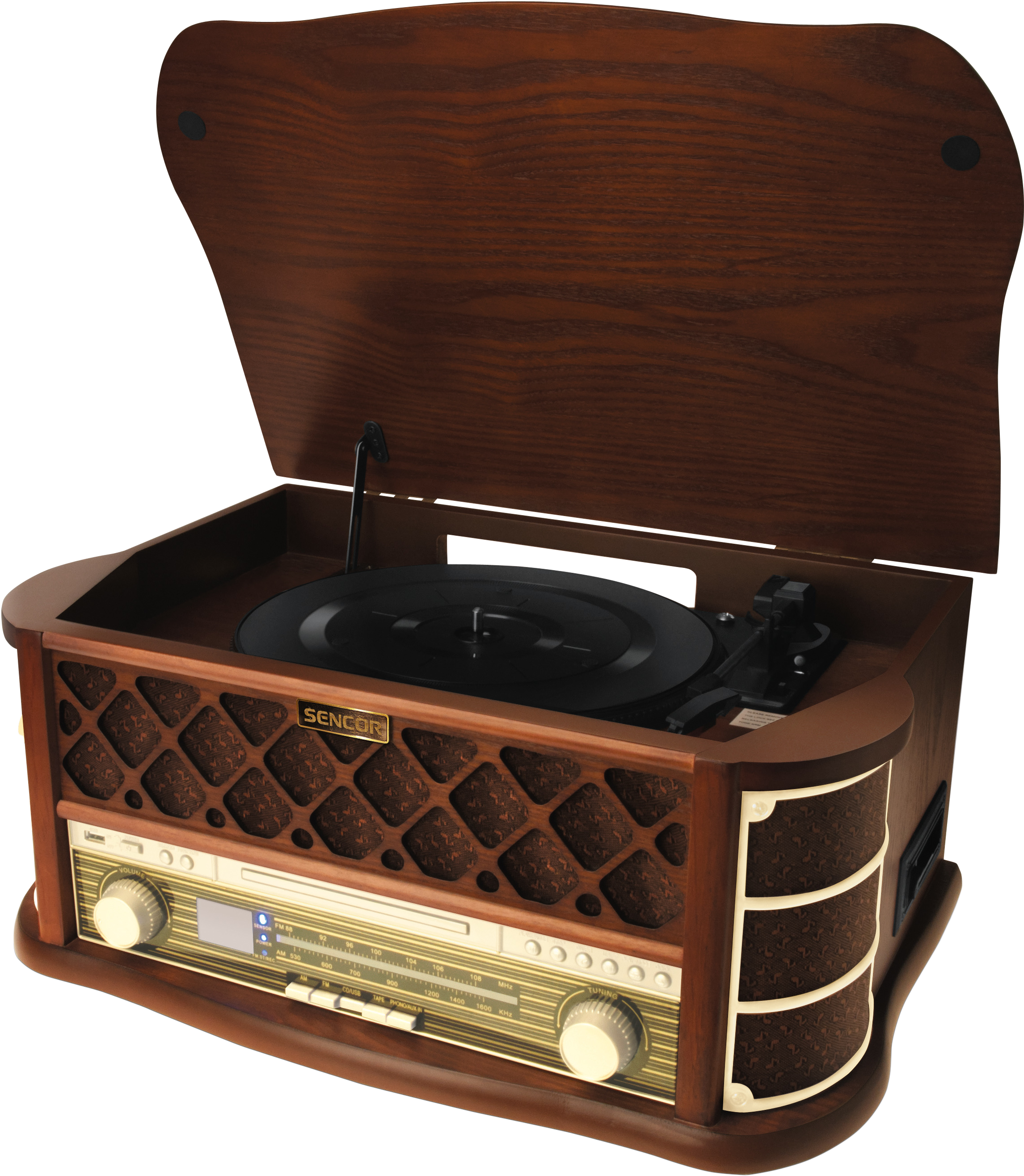 SENCOR STT 016 Retro lemezjátszó, FM/USB/CD, barna (STT 016)
