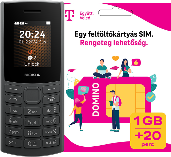 (11 db)NOKIA 105 4G (2024) DualSIM Fekete Kártyafüggetlen Mobiltelefon + Telekom Domino SIM