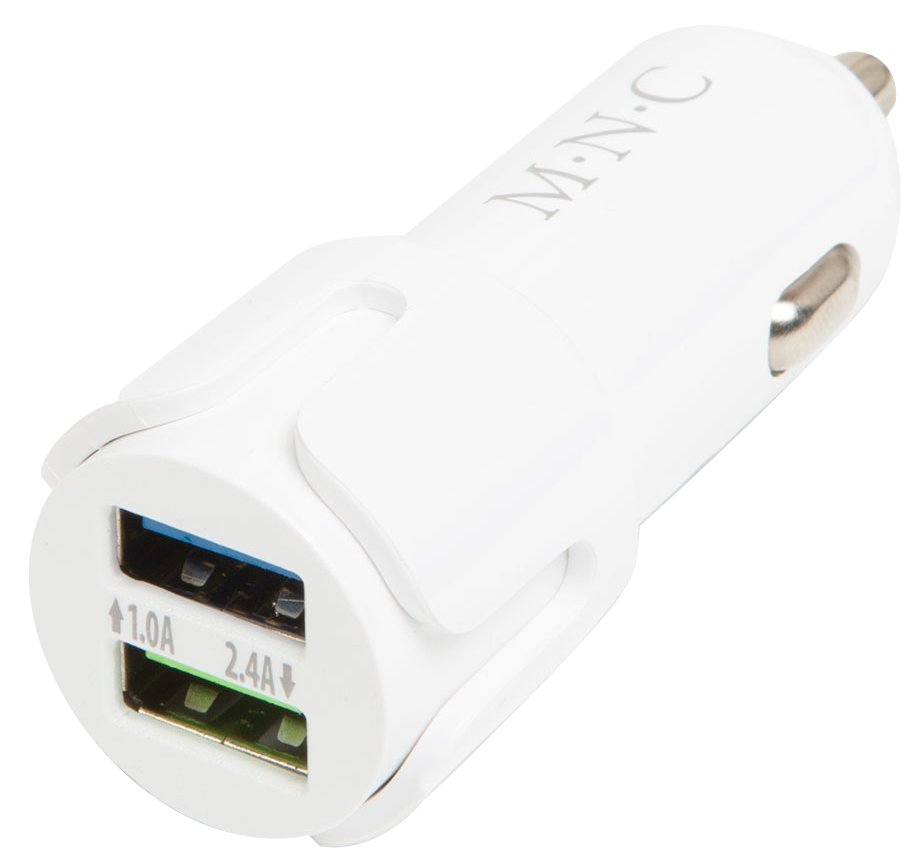 MNC 54931WH Szivargyújtó adapter 2 x USB aljzattal, fehér