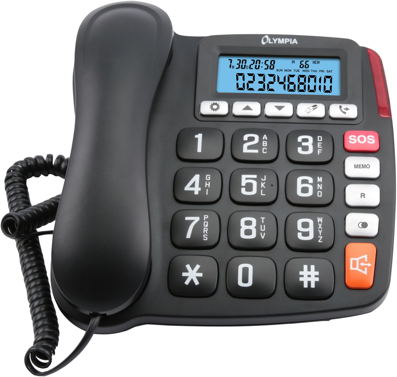 OLYMPIA 4500 ergonómikus vezetékes telefon, nagy nyomógombok, kihangosítás, 3 fotó és 13 gyorshívó memória, újrahívás
