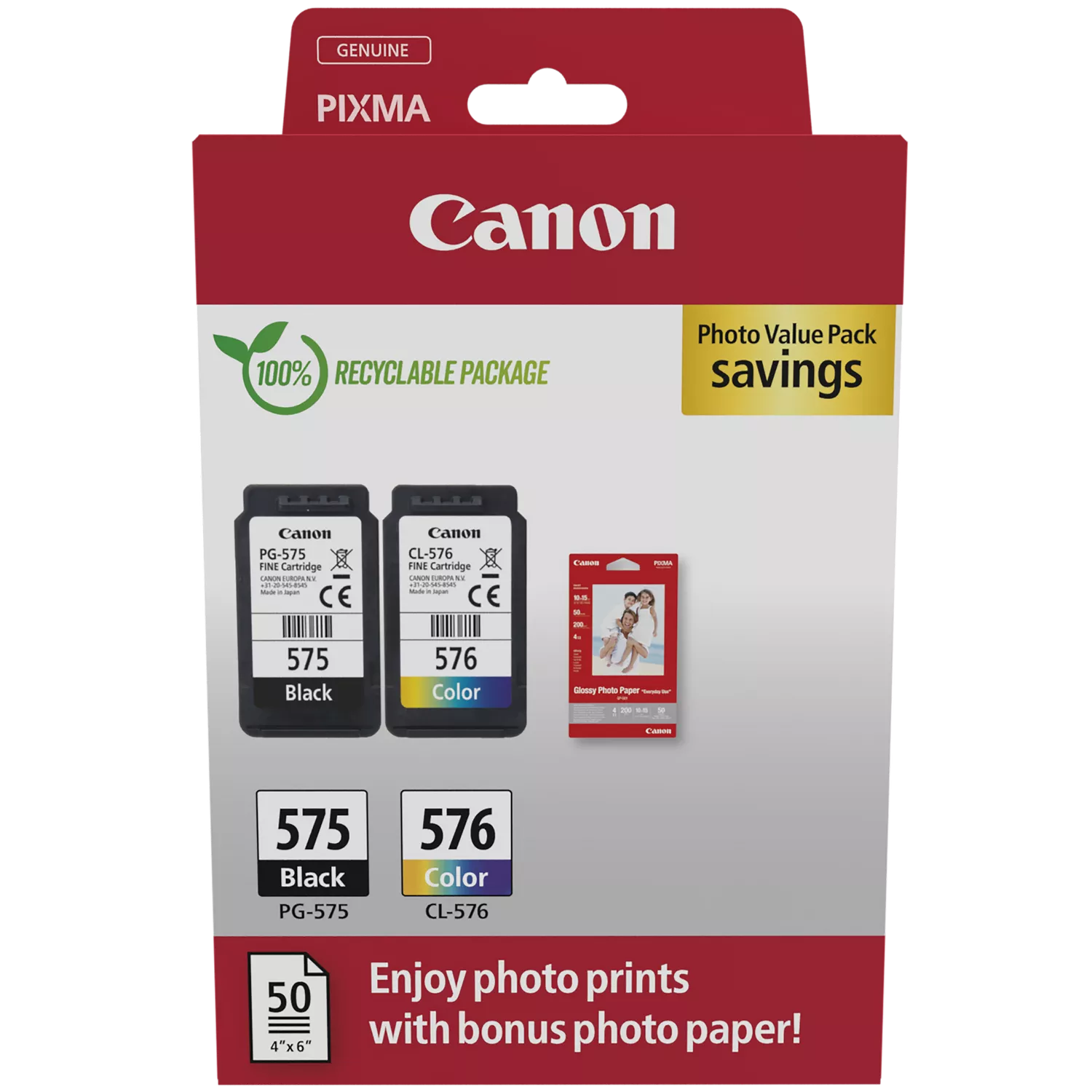 CANON PG-575 (5,6ml) fekete + CL-576 (6,2ml) színes tintapatron 50lap GP-501 10x15 fotópapír (5438C004)